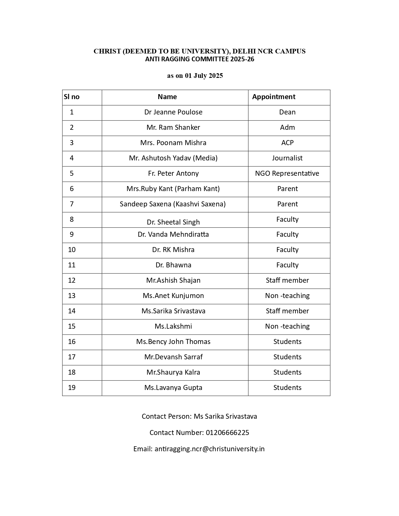 CHRIST (Deemed to be University) is a nurturing ground for an individual's holistic development to make effective contribution to the society in a dynamic environment.