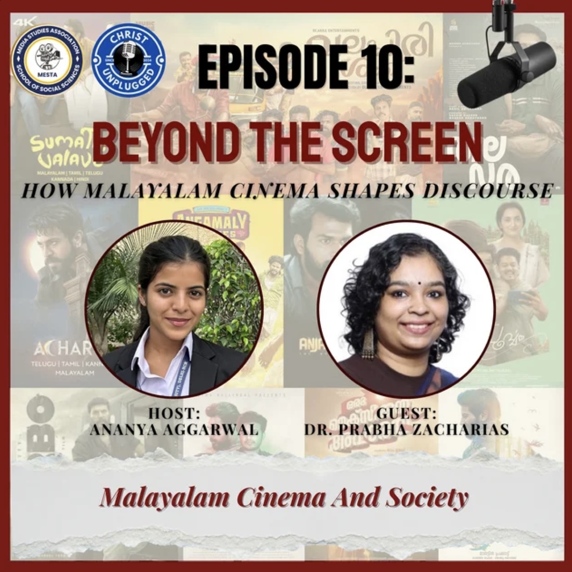 What happens when cinema mirrors society and society talks back? Welcome to Episode 10 of Christ Unplugged, where cinema becomes a conversation and stories reflect lived realities. Hosted by Ananya Aggarwal, student of 6BAMPSY, this vibrant episode features Dr. Prabha Zacharias, Academic Coordinator of the Department of English and Cultural Studies, as we step into the compelling world of contemporary Malayalam cinema. Known for its realism, courage, and social consciousness, Malayalam films have consistently challenged norms and sparked dialogue. From class and caste to gender roles, political power, and everyday human struggles, this conversation explores how cinema stays rooted in reality while resonating far beyond the screen. We unpack the evolution of storytelling, the impact of films like The Great Indian Kitchen and Manjummel Boys, the rise of flawed yet deeply relatable characters, and the growing influence of OTT platforms in shaping narratives for both local and global audiences. If you love cinema that makes you think, question, and reflect, this episode is for you.