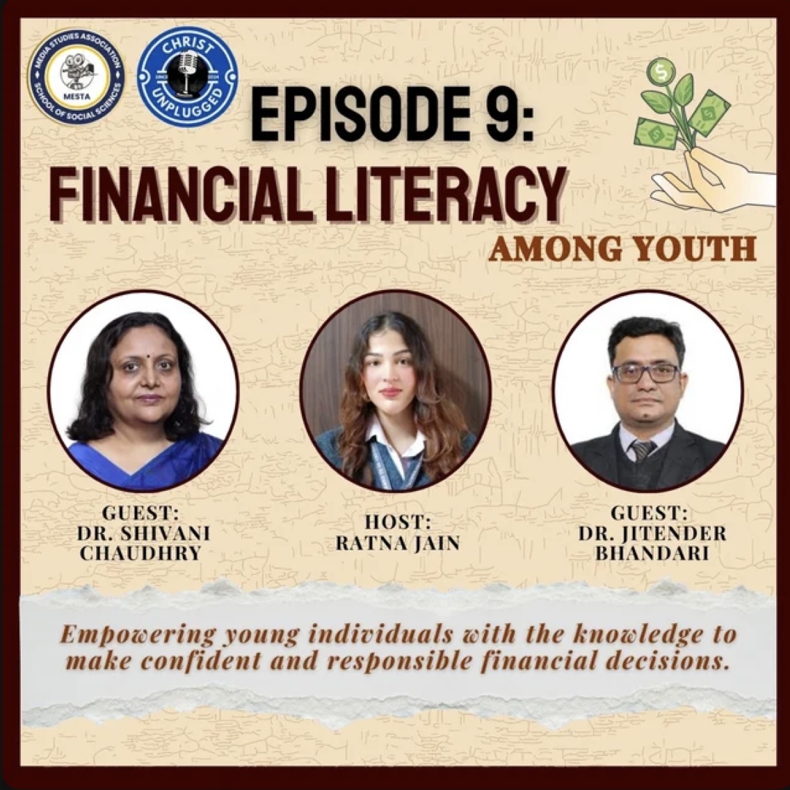 In this engaging episode of Christ Unplugged, we explore a topic that affects every student yet is often misunderstood: Financial Literacy Among Youth. Our guests from the School of Social Sciences, Dr. Shivani Chaudhry, Head of the Department, and Dr. Jitender Bhandari, Academic Coordinator, join us to break down what it truly means to be financially aware in today’s fast-moving world.The conversation touches on the mindset behind spending, the influence of digital payments, the rise of Buy Now Pay Later culture, and the gap between saving and investing among students. We also reflect on the ethical side of financial literacy, including responsible decision making, digital safety, and sustainable habits.Packed with practical insights and relatable examples, this episode encourages young listeners to rethink their relationship with money and discover how empowering financial awareness can be.Tune in and discover why understanding money is really about understanding yourself.