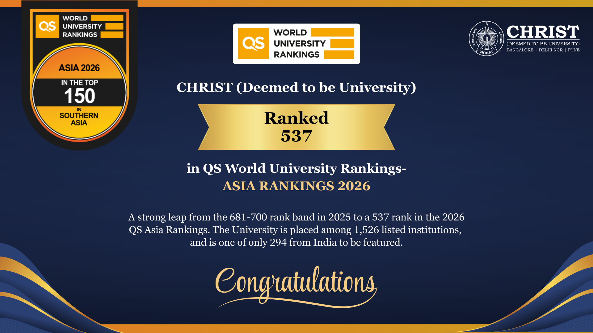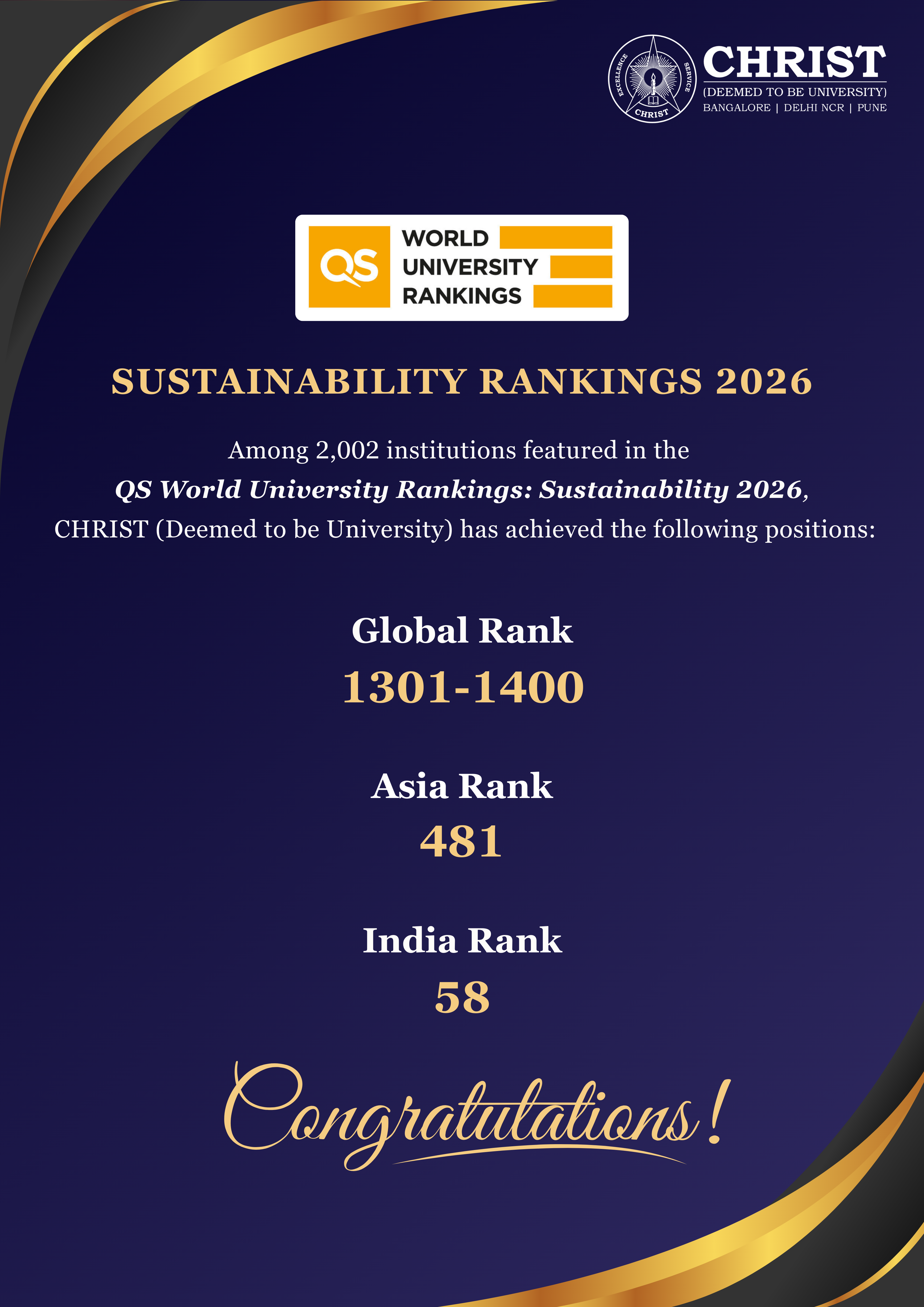 CHRIST (Deemed to be University) is a nurturing ground for an individual's holistic development to make effective contribution to the society in a dynamic environment.